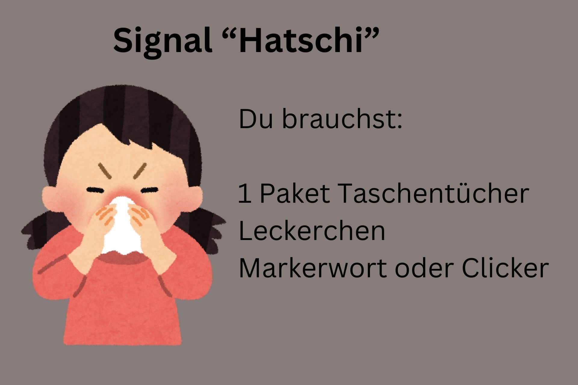 In dieser Übung bringst du deinem Hund bei auf das Kommando „Hatschi“ eine Packung Taschentücher zu dir zu bringen.